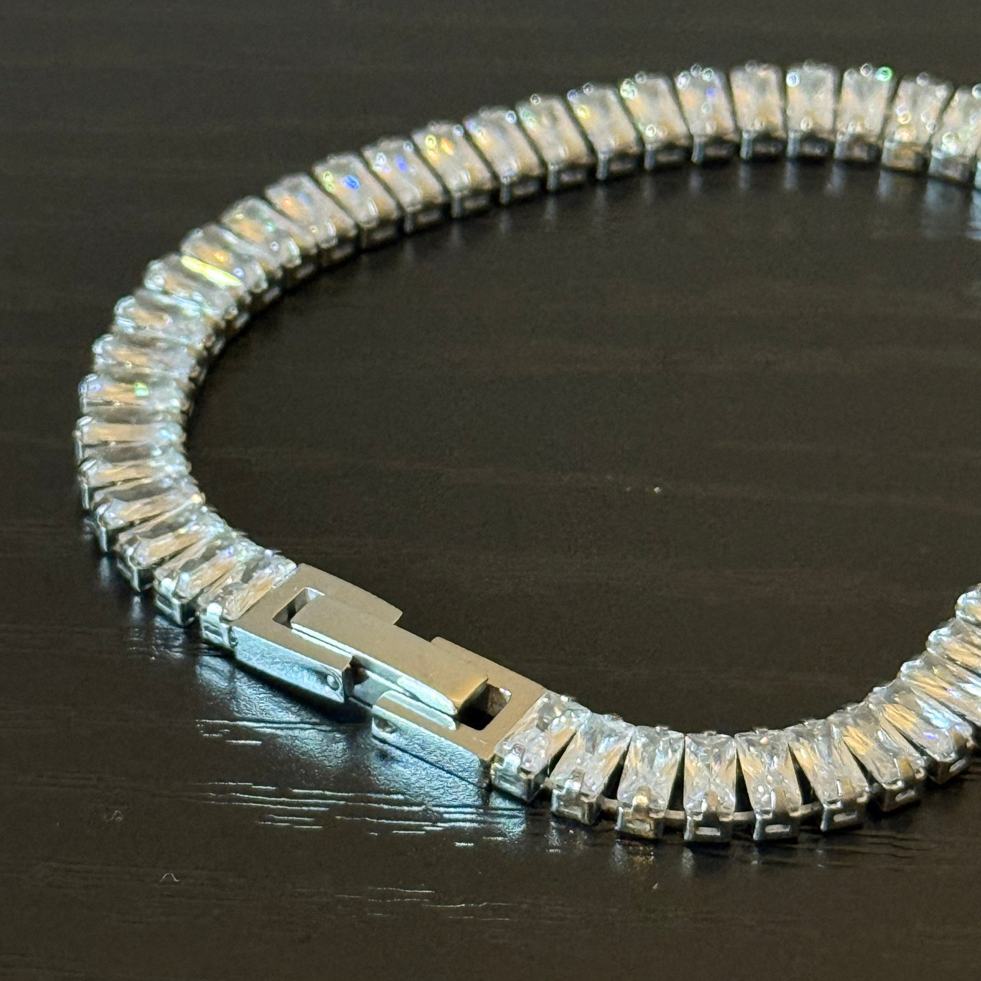 Gefertigt aus hochwertigem Titanstahl, besticht das Armband durch seine außergewöhnliche Haltbarkeit und luxuriöse Ausstrahlung. Die geometrische Formgebung verleiht dem klassischen Tennis-Design eine zeitgemäße Note – pur, harmonisch und unverkennbar stilvoll.